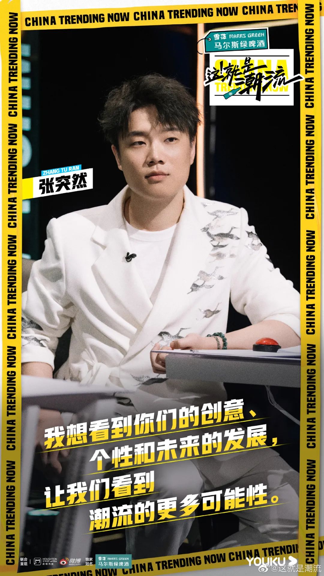 接到《這!就是潮流》邀約後,張突然最初更想做選手,因為可以“不停做衣服給大家看”。但轉念一想,如果可以利用自己在業內的影響力,讓更多中國風選手被看到,那會更有意義。於是接受了“潮流助推官”這個身份。