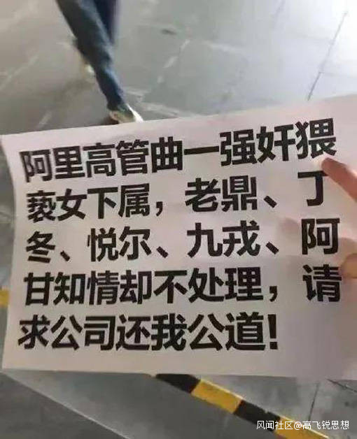 高飛鋭思想不認為這是一起單純的個案,而是阿里巴巴特有的商業飯圈酒局文化了——尤其是創造效益的業務部門。這種事,在阿里這種互聯網大廠已經見慣不怪,習以為常了,其目的是以犧牲員工(尤其是漂亮女員工)的個人利益來謀取阿里巴巴的最大商業利益。不同之處在於,以前遭遇這種事情的女員工,要麼為公司做貢獻,忍氣吞聲了;要麼得了好處,被和諧了。沒想到這次卻碰上了硬茬,不願意隱忍,不願意姑息,不接受和解,哪怕丟掉工作,哪怕身敗名裂,都要討個公道。