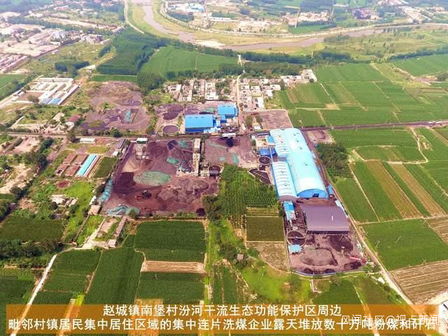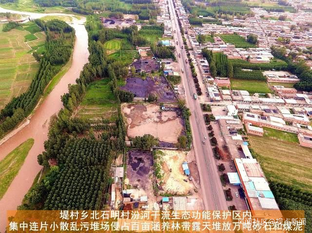 觀察發現,由於汾河沿岸向來屬於村鎮密集分佈地帶,涉嫌違規生產的小散亂污企業普遍違反衞生防護距離毗鄰村民集中居住區域,嚴重侵擾周邊羣眾正常生產生活。在堤村村一帶,小散亂污企業的重型車輛將數公里長的鄉村道路碾壓得坑坑窪窪,過往車輛揚塵不斷;在崔家莊一帶,由於挖砂造成地下水倒灌形成集中連片的黑臭水體,致使村莊周邊蚊蠅滋生垃圾遍地髒亂不堪;在南堡村,眾多洗煤企業違反環評露天生產,使得周邊村莊經常籠罩在漫天煤塵之中,進出村莊的道路佈滿煤塵。近年來,違規排污引發的當地汾河沿岸各類村企矛盾尤其突出,有關環境污染的投訴舉報層出不窮。