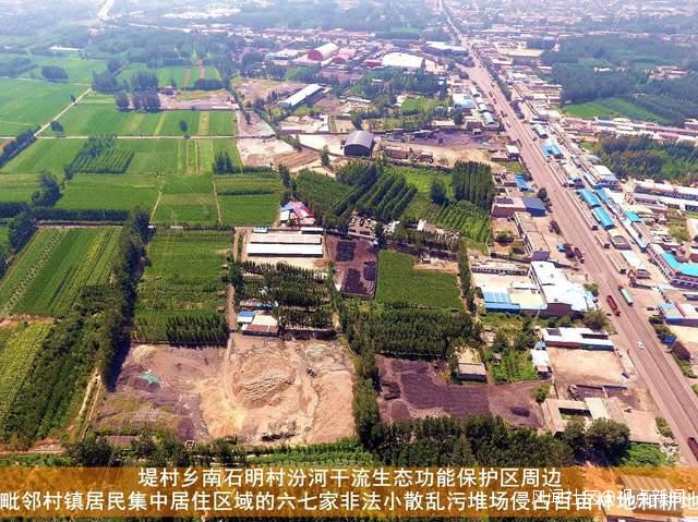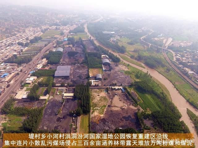 粗略統計,在洪洞境內長達三分之一的汾河沿岸生態功能保護區內,大大小小的採砂場、水洗砂場、砂石堆場、煤泥曬場和廢棄廠礦垃圾堆場、以及非法私挖的小型魚塘等竟有多達五六十處,數量之多令人震驚。各類小散亂污企業重點散佈在當地汾河上游的堤村、趙城和辛村三個沿汾鄉鎮,其中又以堤村鄉的小河村、北石明村、南石明村、堤村村和安定村五個沿汾村莊最為集中。一眼望去,汾河岸邊散亂分佈的各類污染企業,猶如烙印在汾河兩岸青山綠水之間密密麻麻的“黑色瘢痕”,嚴重威脅汾河水質,污染沿岸地下水源,破壞汾河流域生態景觀。