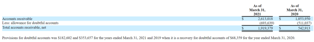 更糟糕的是,公司的應收賬款居高不下。從去年的105.4萬美元增加到今年的261.30萬美元。其中,賬齡在3個月-12個月的應收賬款為44.93萬美元,賬齡超過12個月的應收賬款為21.6萬美元。報告期內,其壞賬準備金達69.36萬美元。
