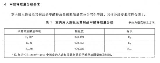 另一方面,經過行業多年發展,國家標準逐漸趨嚴,人造板的“環保度”正在不斷升高。在今年10月1日即將出台的GB/T 39600—2021《人造板及其製品甲醛釋放量分級》新國標中,室內用人造板及其製品的甲醛釋放量按照限量值被分為3個等級——E1級(≤0.124mg/m³)、E0級(≤0.050mg/m³)和ENF級(≤0.025mg/m³)。