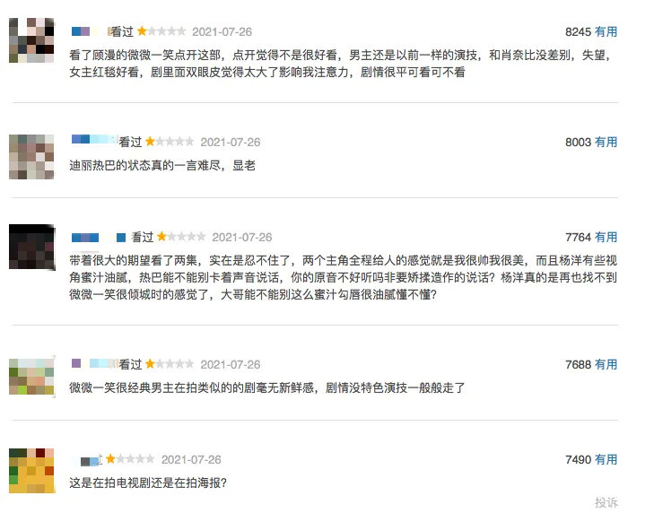 “成也選角,敗也選角吧,換作一般的小甜劇,這劇口碑有可能爆了。但是兩位主角自帶飯圈的同時,也自帶黑粉,再加上也有不少其他頂流的劇集即將播出,網上也説某頂流的飯圈粉們也會對該劇產生評分上的攻擊,所以現在豆瓣評分還在拉鋸中。”一位關注娛樂圈動向的《王者榮耀》直男粉向壹娛觀察(ID:yiyuguancha)説道。