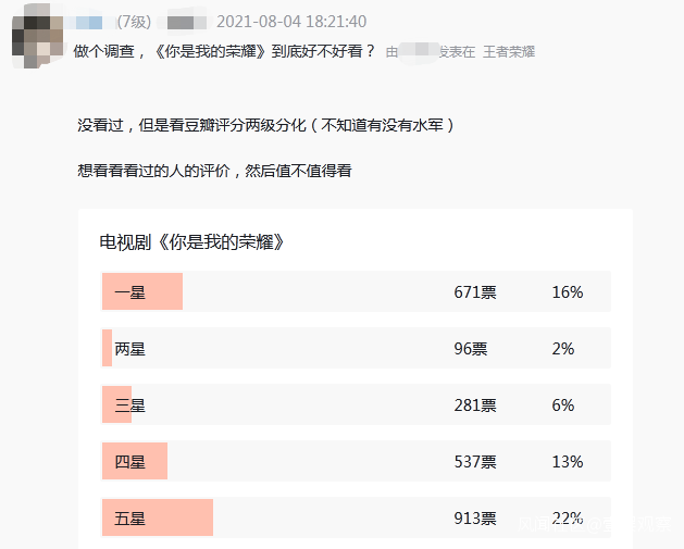 為此,壹娛觀察(ID:yiyuguancha)先後與多位建號1000天以上的虎撲JRS(同時為《王者榮耀》玩家)聊起了《你是我的榮耀》,但出乎意料的是,他們普遍不是豆瓣一星黨大軍中的一員,其中幾位甚至主動成為了該劇的“自來水”。