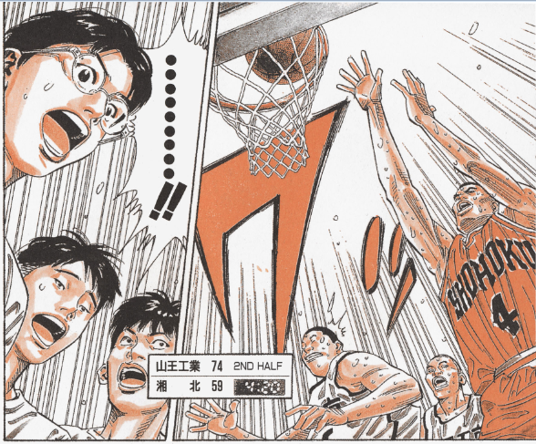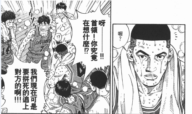 就算是山王這樣的無敵之師,也有他們執着的目標。想想堂本為何在球隊形勢危機時,遲遲不叫暫停呢?如果山王的目標是把無敵的姿態永遠保持下去,那麼他們就不能在出師的第一場比賽裏證明自己並不怎麼無敵。這就是球員出身的解説們喜歡講的心態變化——當你成為強者時,如果你想的是保持勝利果實,而不是盡力拼下眼前的對手,那麼你就危險了。