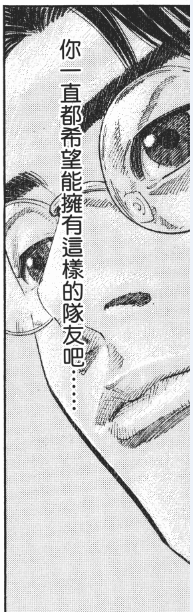 沒有過堅守的孤獨,就不能體會苦盡甘來的幸福。只有一路陪伴赤木的木暮,知道發生了什麼——赤木,他終於知道什麼叫做被命運垂青的感受了。