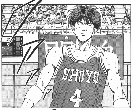 在流川完成覺醒之後,赤木成為了最大受益者,他3次接流川的出球完成終結,然後在櫻木的引導下,把大帽送給了澤北榮治。