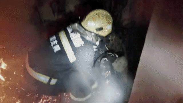 大火肆虐時,他們要爭分奪秒地從死神手裏搶人。紀錄片中,重慶一棟坡型建築大樓起火。負責搜救的消防隊員們,需要在完全無法看清前方的白煙裏,抓着前方隊員的腰帶,一户一户地摸着牆敲,爭取把人帶出來。
