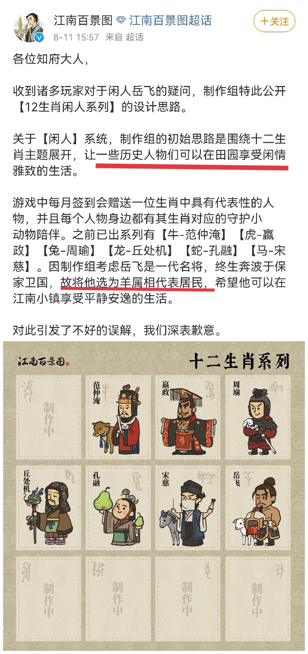 8月6日,某手遊設計了一Q版“岳飛”立繪,