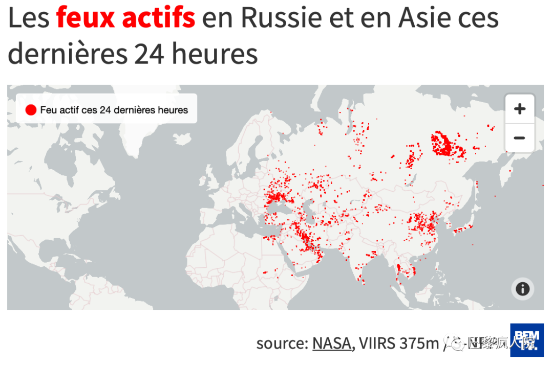 在俄羅斯和亞洲,火災集中在俄羅斯東部的西伯利亞雅庫特地區,目前有4200多名消防員部署在那裏。中東的火災情況也較為嚴重。