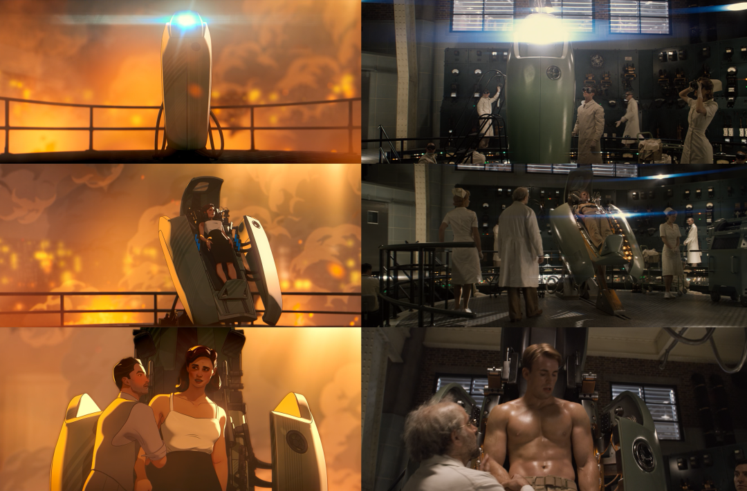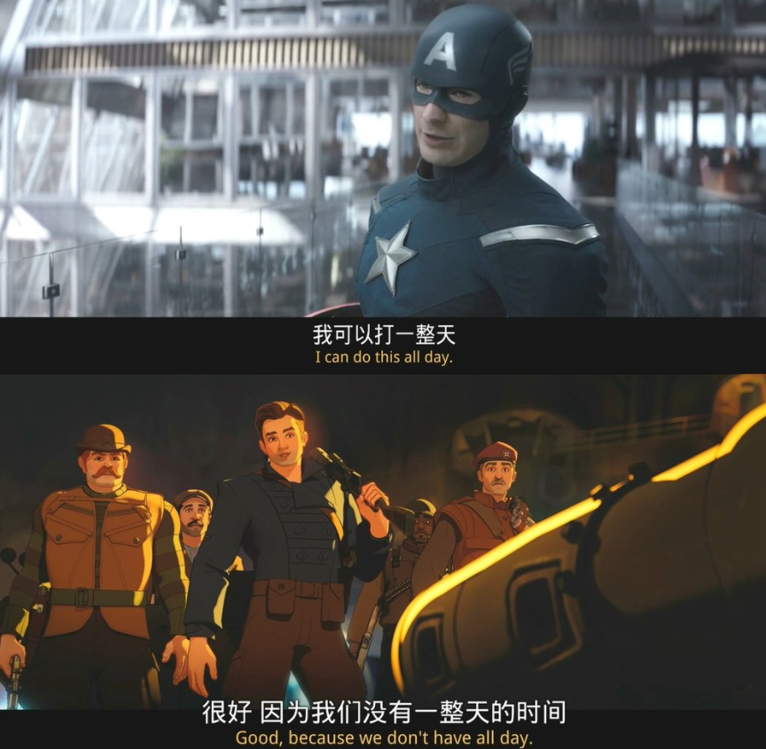 《假如》第一集主要改編自《美國隊長》,大篇幅1:1復刻電影名場面。