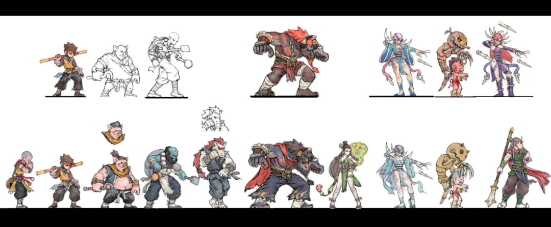 在處理角色時,他們用類似國畫的上色效果、線條形狀,和較為粗獷的描邊,讓角色在整體上有了國風的感覺。在立繪和原畫上,這一點體現得更加清楚。而隨着畫風改變,這款遊戲的名字也變了好幾次:從《暗鬥西遊》到《鬥西遊》,再到《鬼鬥》《墨斗》……