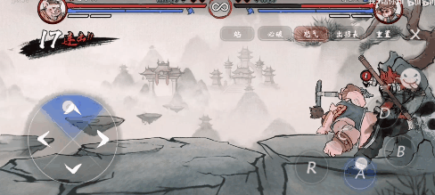 做好技能後還不算完,想在手機屏幕上,實現街機遊戲那樣搓連招的效果,手感、按鍵衝突、搖桿方向判定都是硬傷。《墨斗》的做法,是讓玩家用四方向鍵+動作鍵的組合來打出招式,再用招式的組合打出連段。