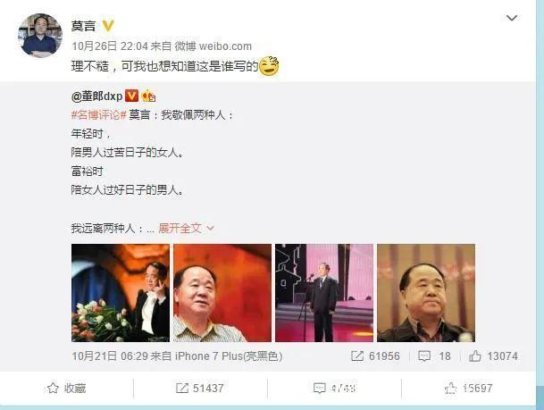 這就像《莫言最經典的10句話:男人看了沉默,女人看了流淚》一樣,莫言:我沒説過。