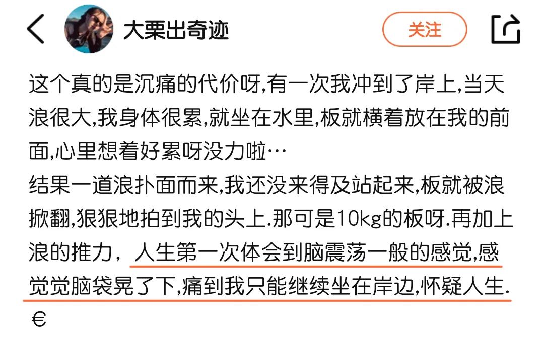 盤算着只圖一樂,拿衝浪板在岸邊拍拍美照的朋友小心了,前輩“大慄出奇跡”已經身體力行,用自身慘痛經歷發出警告:岸邊躺平也能把你腦袋砸懵。