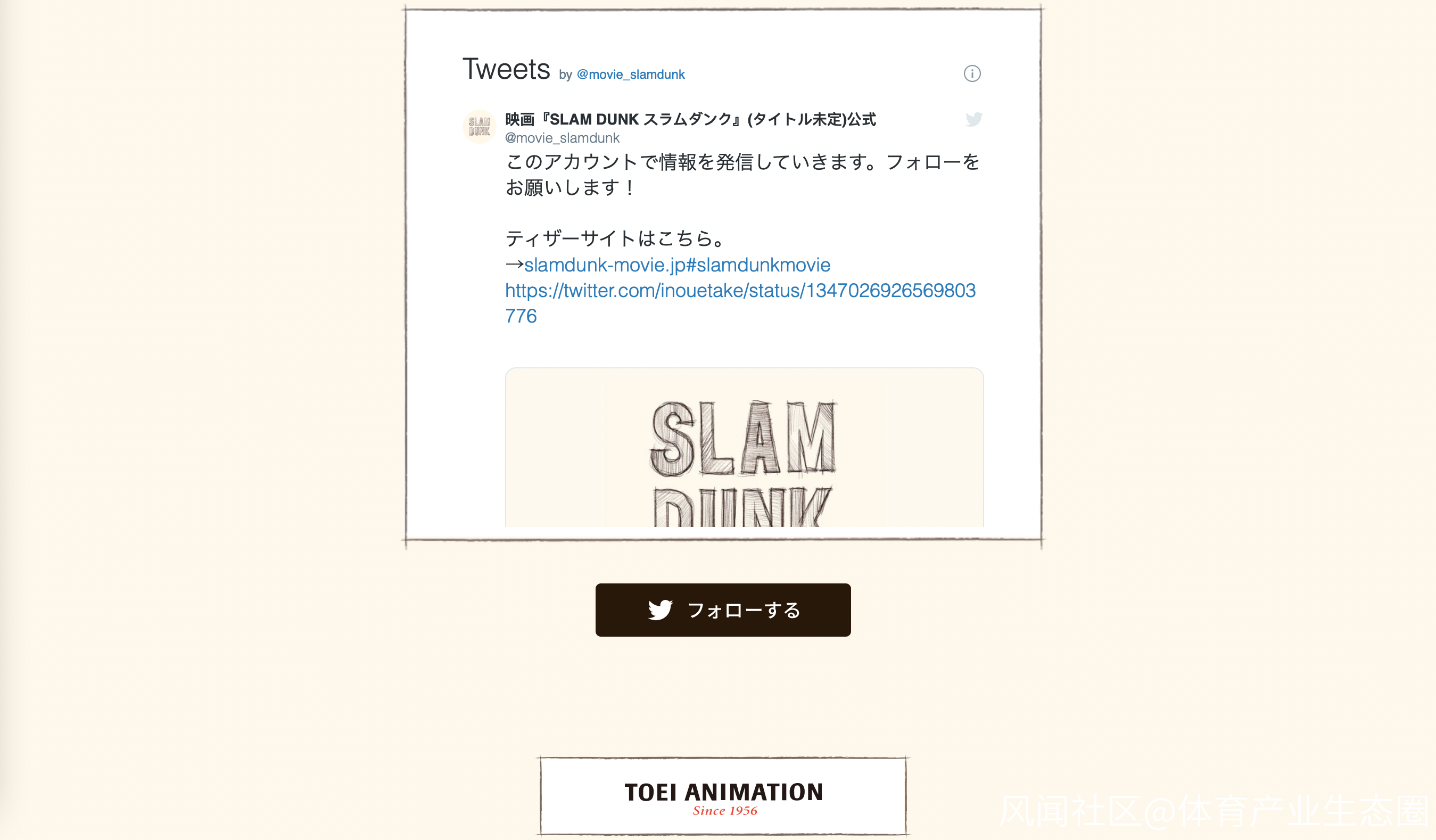 此外,瀏覽同步上線的電影官方網站,信息也只有一個SLAM DUNK的標題,以及同步推特信息顯示的窗口。