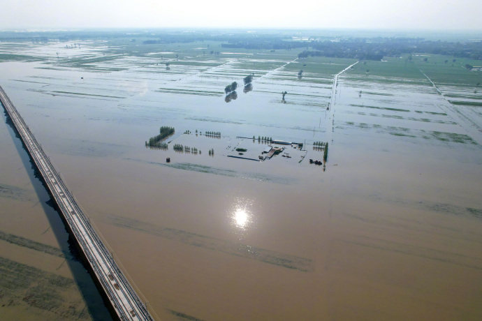 非滯洪區的農田通過葉面施肥等措施就能恢復,滯洪區水位最深處達2米-3米,地下水已經飽和,地面水無法繼續滲透,現有積水全部滲透預計需要一個多月。