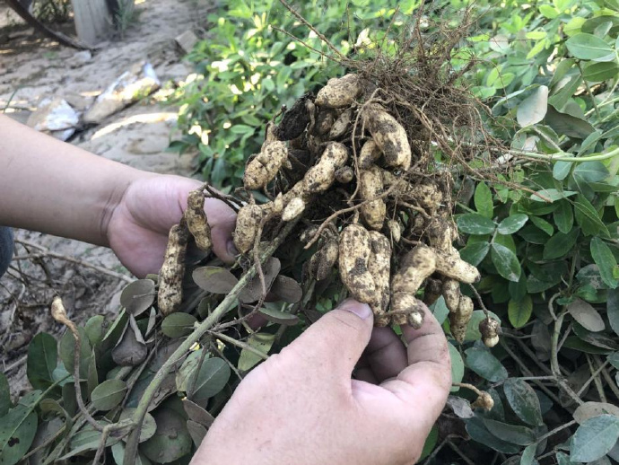 花生葉面上佈滿了洪水退下後殘留的淤泥