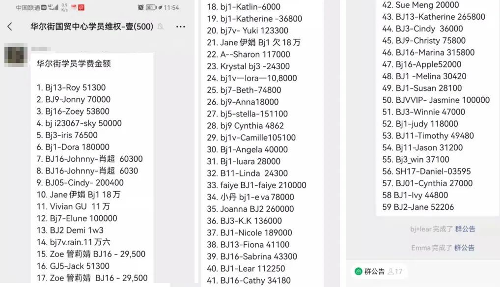 在維權羣裏,學員紛紛發起接龍,有人粗略估算,涉及未退學費至少上億。