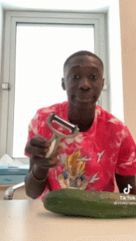 人家用門牙去黃瓜皮,展示了牙齒的強健。