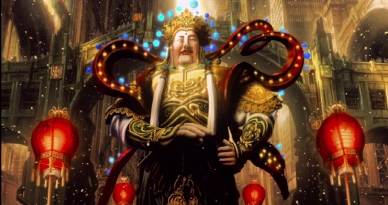 漫天霰雪下(事實是,福建東南低海拔地區下雪的可能性極小),褪色的6D都市鋼鐵森林簇擁擠壓着街道,巨型神像手持法器,目有精光,身上纏着led燈帶,從閃爍着霓虹燈牌的高樓下緩緩行過。