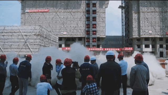 領導在視察安居項目時,在水泥質量不過關、又偷工減料的牆下面合照留念,結果牆突然塌了!