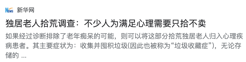 都能感受到“囤積垃圾的老人”在不斷增多