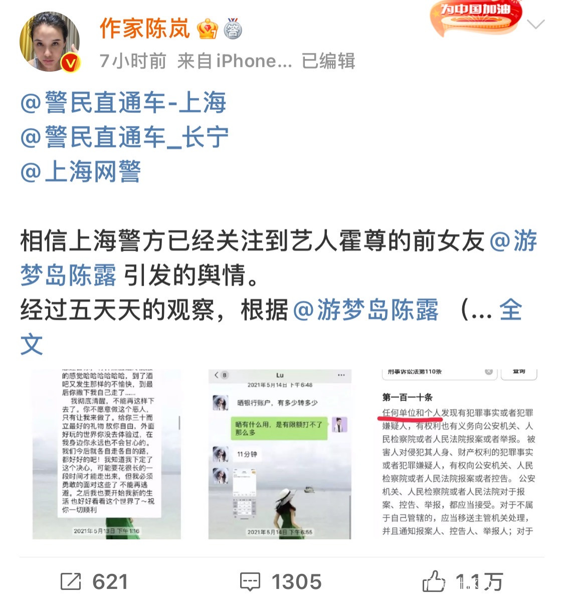相信上海警方已經關注到藝人霍尊的前女友@遊夢島陳露 引發的輿情。