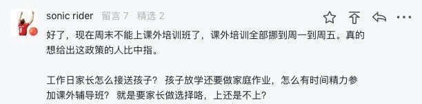 週末不讓補,平時工作日放學後允許補,這不明擺着讓大家把校外課都挪到平時放學後嗎?想必至少以後週末看起來一片祥和寧靜,還以為內卷消失啦!