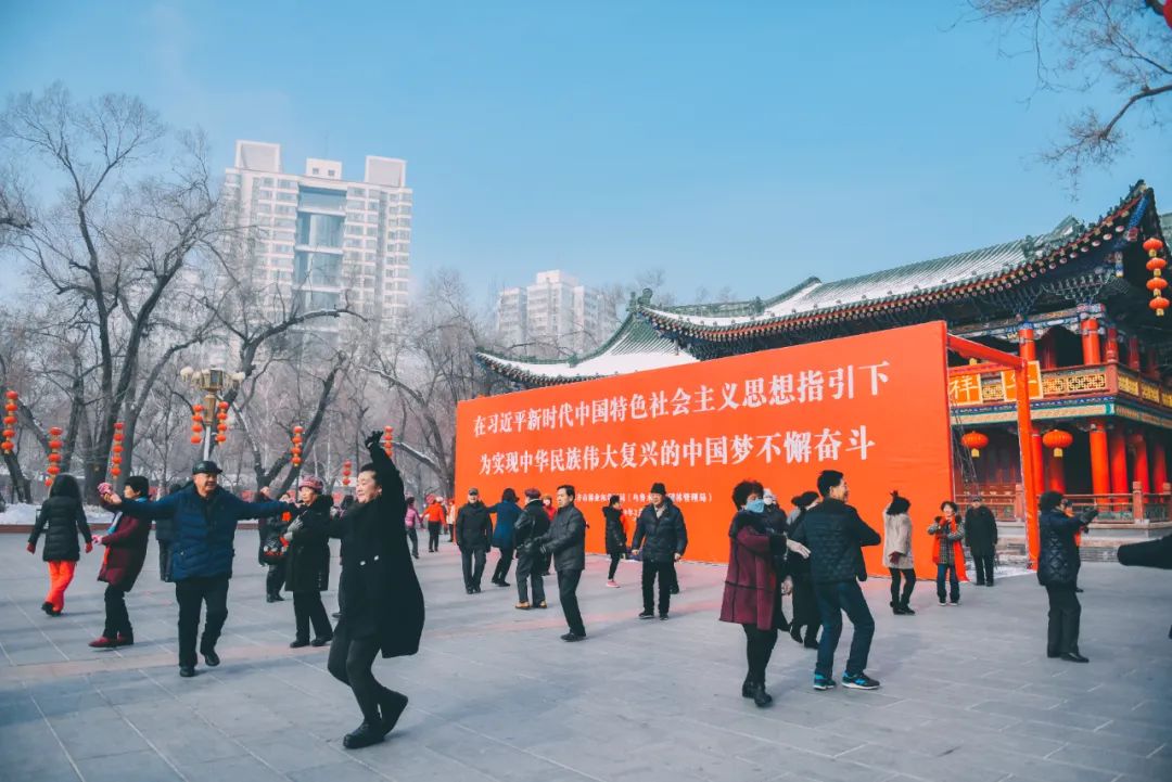 抽陀螺的大爺、跳廣場舞的大媽、歌唱祖國的老年合唱團、揹着畫板寫生的年輕人、拉大提琴的孩子,還有來公園壓腿的小姑娘們,一派祥和。