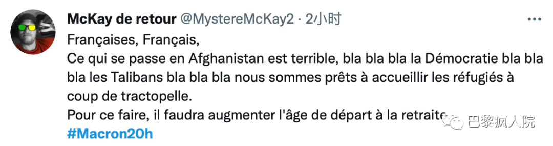 法國人們!正在阿富汗發生的事情真的太可怕了,blablabla 民主 blablabla 塔利班 blablabla 我們對迎接難民做好了準備。