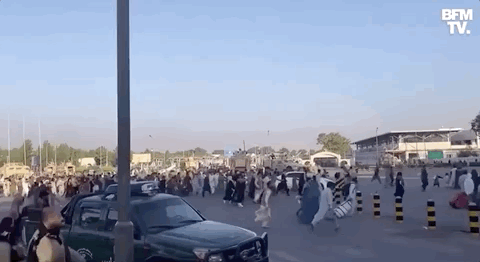 雖然法國的撤僑飛機還未抵達喀布爾,但美軍的飛機在。喀布爾急於逃跑的民眾已經蜂擁至機場。