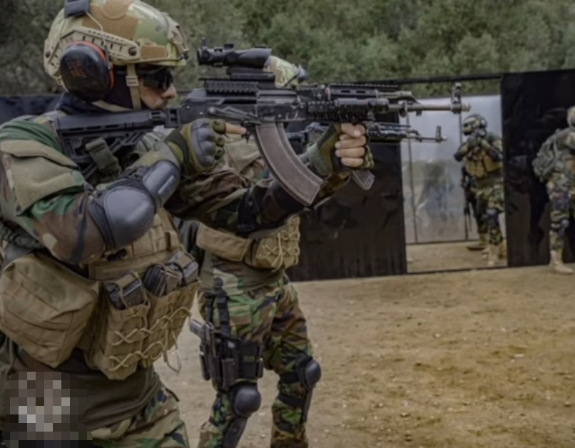 使用的武器上則比較混搭了,突擊步槍上美製M4卡賓槍和俄製AK一起裝備,不過都經過了特種作戰戰術化改裝,比如給AK改裝可伸縮的槍托、加皮卡汀尼導軌、ACOG瞄準鏡等。另外還有來自德國的MP5SD3微聲衝鋒槍,應該是為了提高隱蔽滲透能力。