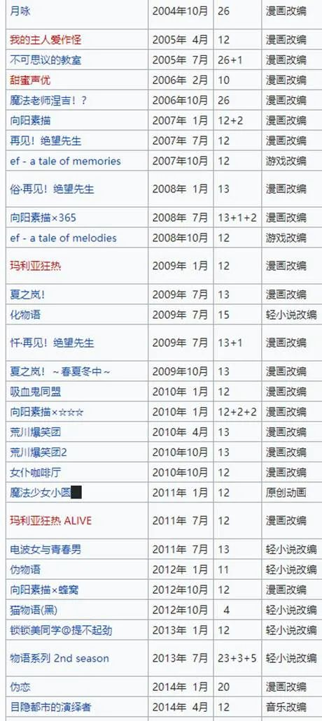 shaft的作品履歷,《悠久之翼》《魔法少女小圓》《電波女與青春男》《偽戀》《絕望先生》等等作品都是動畫愛好者之間廣為流傳的名作