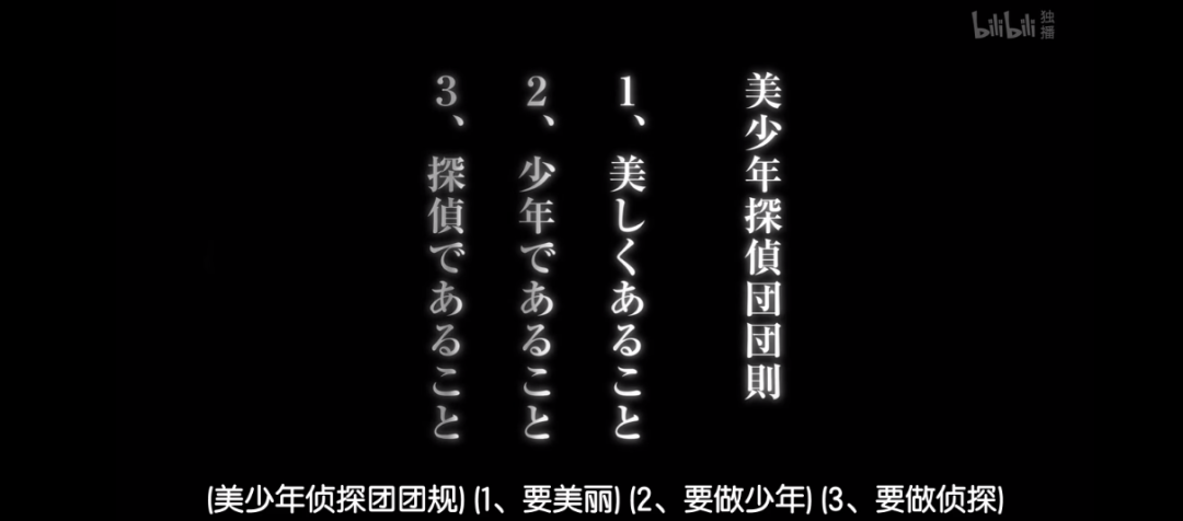片中,美少年偵探的成員履行着三條團規:1.要美麗 2.要做少年 3.要做偵探。
