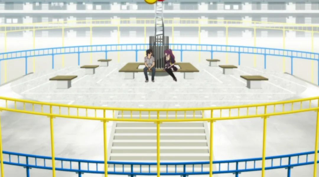 在上文中我們曾論述道西尾維新的文風帶有舞台劇的特徵,而在動畫中我們得以看到Shaft通過大量構圖強化本作“舞台劇風”的感知。