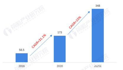 2016~2025中國二手奢侈品市場規模及預測(單位:億元)