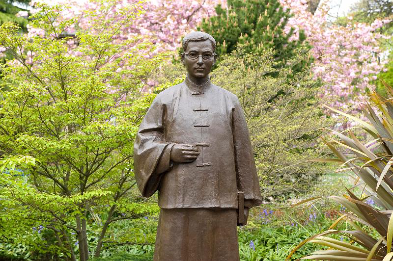 在英國愛丁堡大學孔子學院門口,至今仍矗立着這位中國人的雕像。