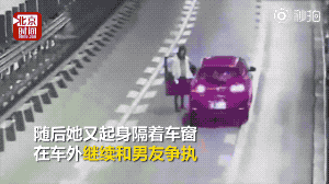 2018年12月,浙江舟山,有一對情侶在高速上開着開着車就鬧起了彆扭。