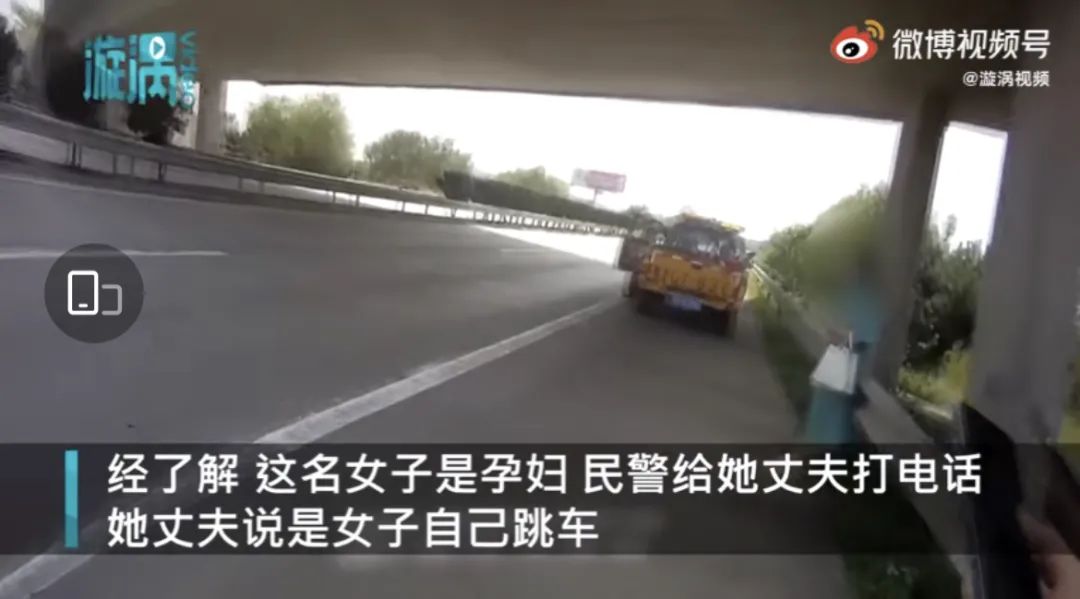 交警叔叔轉頭撥通了丈夫的電話,結果丈夫表示是妻子自己跳車的,不是他扔下的。