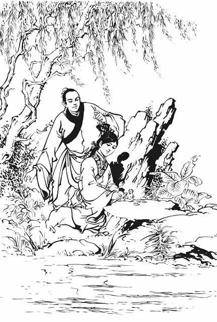 段譽躺在地下,見到帛軸和裸體男子的圖形,登時想起了那個給自己撕爛了的帛軸,心想:“身上的穴道經脈,男女都是一般,神仙姊姊也真奇怪,為甚麼要繪成裸女之形,而且這裸女又給上自己的相貌?”隱隱覺得不妥,似乎神仙姊姊有意以色相誘人,教人不得不練圖中的神功,自己神智迷糊中將帛軸撕了,説不定反而免去了一場劫難。只是如此推想未免褻瀆了神仙姊姊,這念頭只在腦海中一閃而過,再也不敢多想。