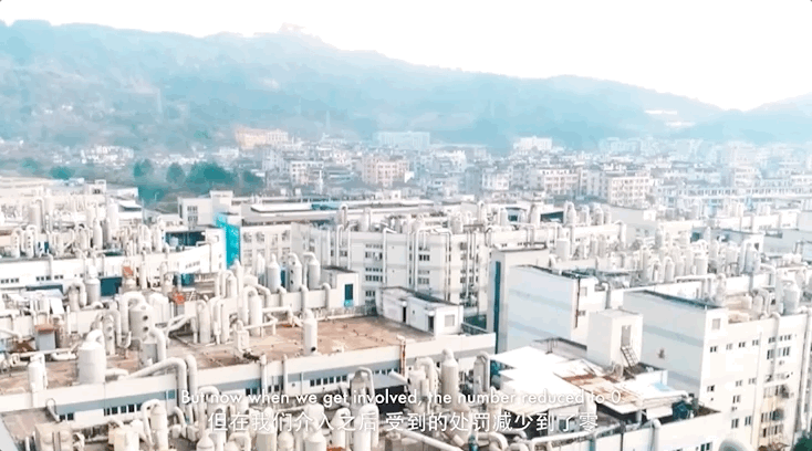 在我們介入之前,三年內園區共有22項關於環境污染的處罰。但在我們介入之後,受到的處罰減少到了零。