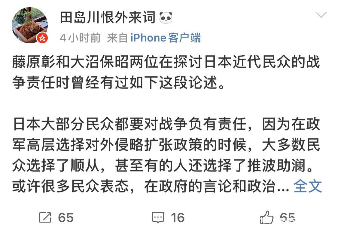 日本大部分民眾都要對戰爭負有責任,因為在政軍高層選擇對外侵略擴張政策的時候,大多數民眾選擇了順從,甚至有的人還選擇了推波助瀾。