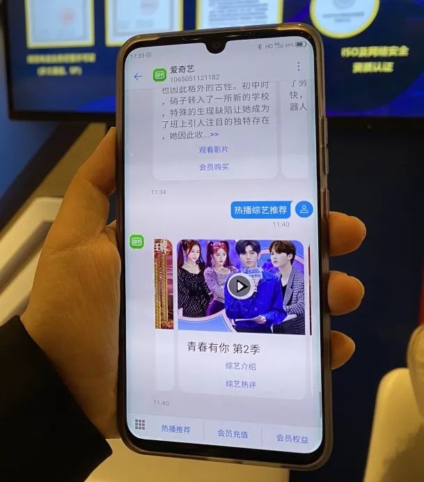 愛奇藝5G消息示例:短信裏可直接觀看視頻,圖源:IT時報