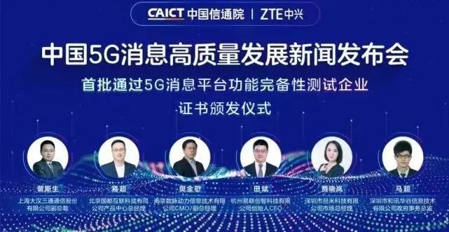 3月29日,在“中國5G消息高質量發展新聞發佈會”上,信通院發佈首個5G消息平台行業標準《5G消息平台功能完備性測試規範》,並公佈首批6家入選企業名單。