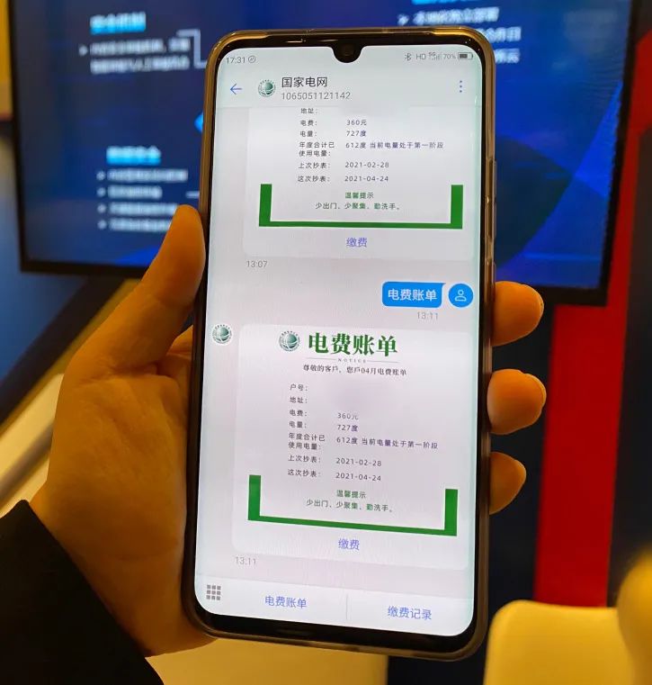 國家電網5G消息示例:通過短信直接繳費,圖源:IT時報