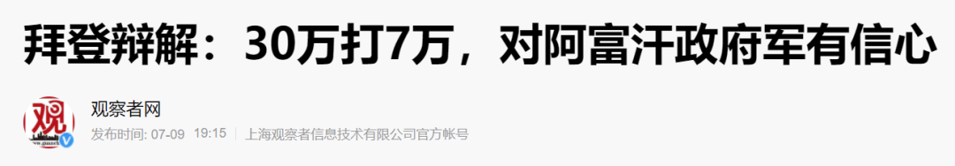 塔利班順風順水的攻勢讓美國在全世界顏面盡失,所有媒體都拿着1975年西貢政權迅速倒台後美國人狼狽不堪撤軍做對比。很明顯,這次阿富汗政府軍垮得更快。
