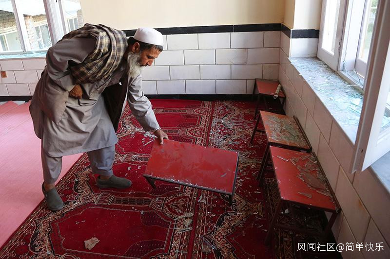2021年5月14日,阿富汗首都喀布爾北部郊區的一座清真寺,一名男子在清理遇襲後的現場。圖|新華社