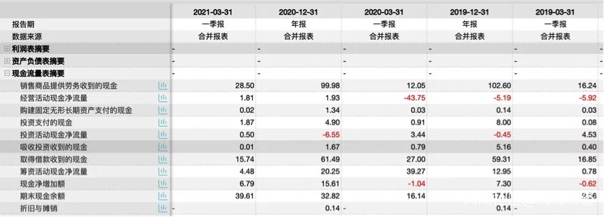 整個一季度實現經營性現金流1.81億元,同比增長104%,全年現金淨增加額為6.79億元,同比增長753%。
