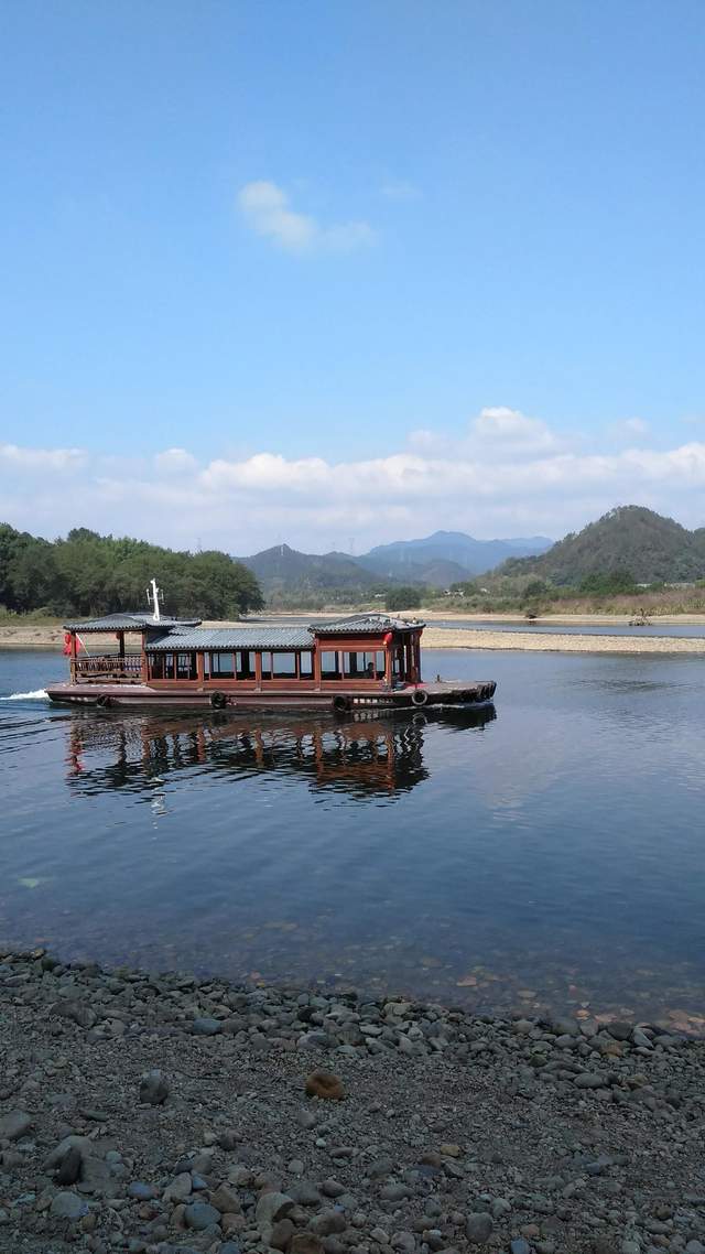 那古色古香的遊船在江中前進的時候,江水清澈見底,不僅如此,而且那江底的各種漂亮的鵝卵石清晰可見,潔淨分明,歷歷可數,假如你撈起,那麼每一顆鵝卵石都無需你去擦洗,它就可以是你永遠的寶貝,因為它來自於麗水,來自於這個世界的永遠難忘的——美麗的古堰畫鄉!